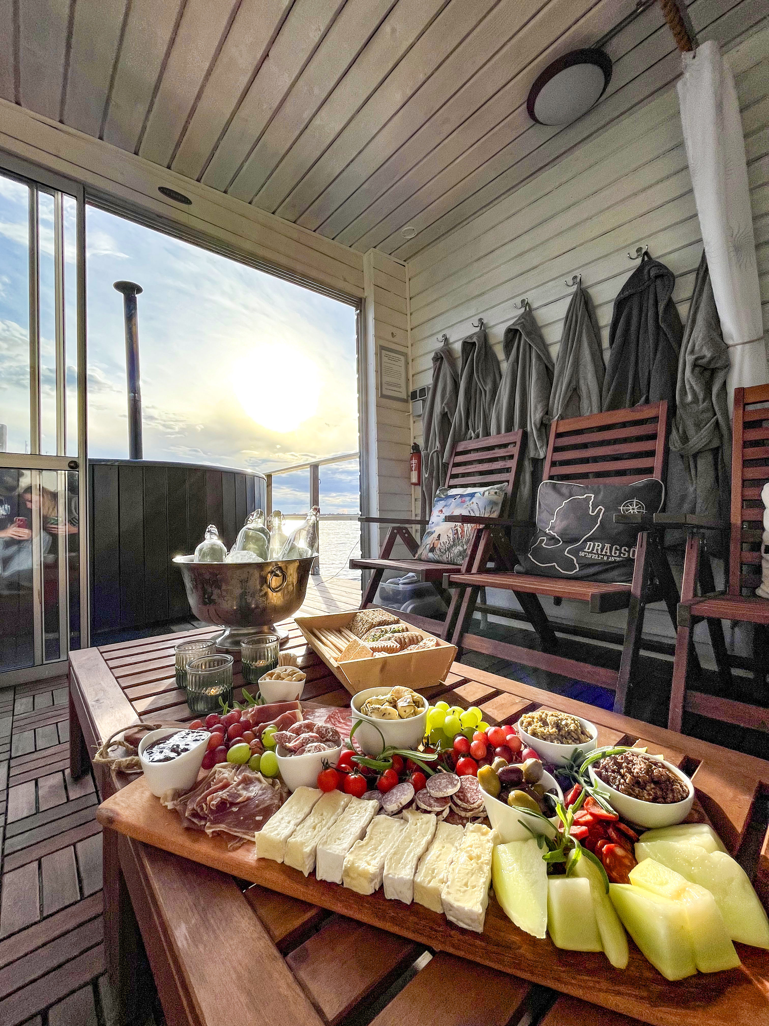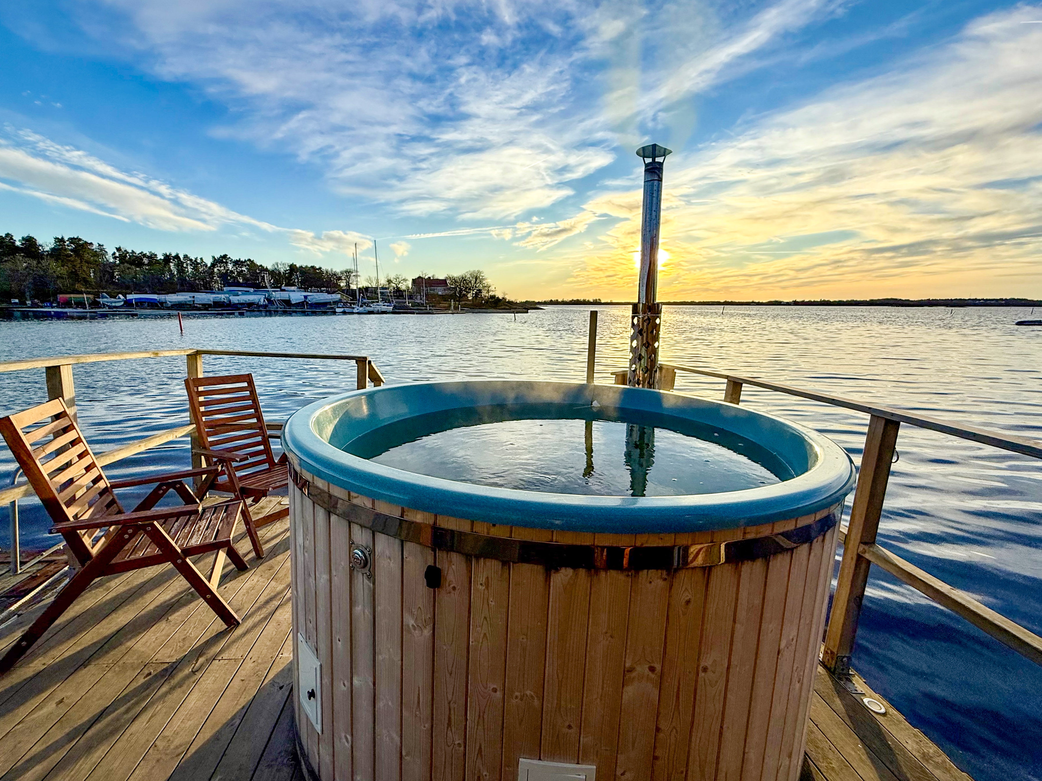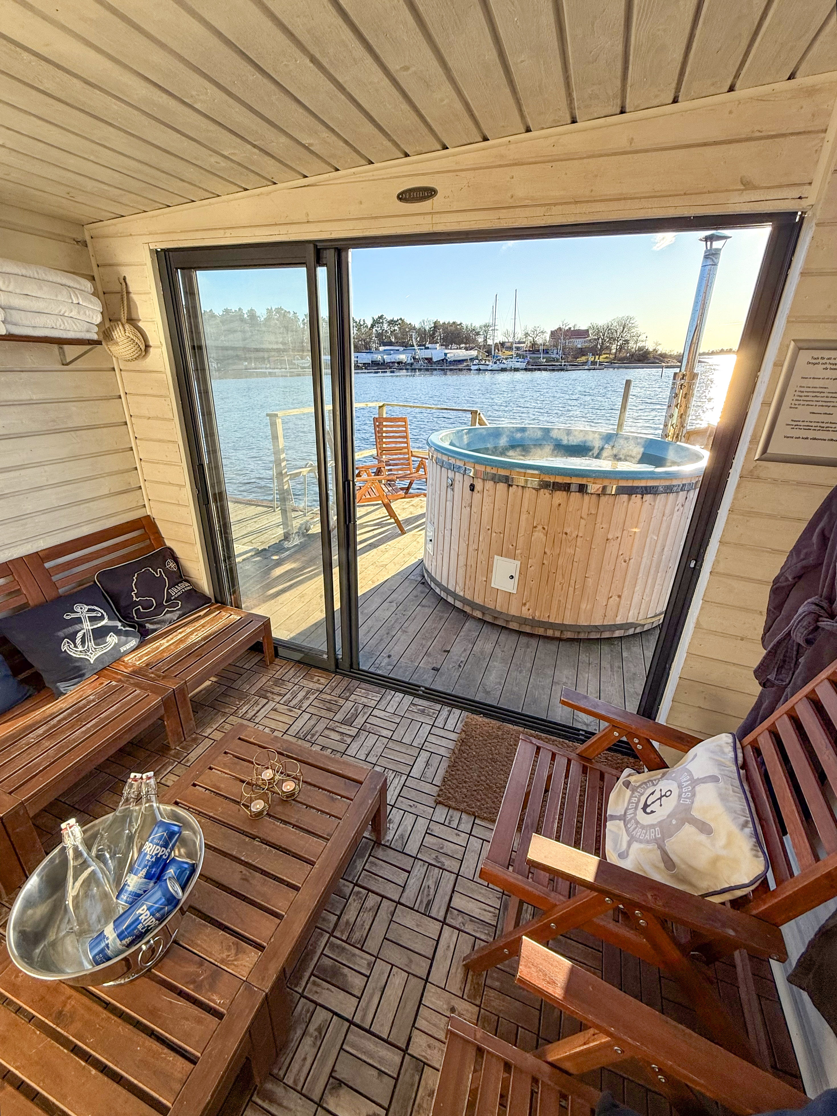 an outdoor-experience to remember! Get on the hop-on/hop-off boat for a scenic 10-minute tour out to the island of Dragsö, where your floating sauna awaits, heated and ready. Put on your viking helmets and enjoy the healthy combination of hot sauna and a less hot swim in the Baltic sea. Lift your viking drinking horns to a Swedish "skål!" and add a platter (extra) of delicious snacks to fill up your energy level.